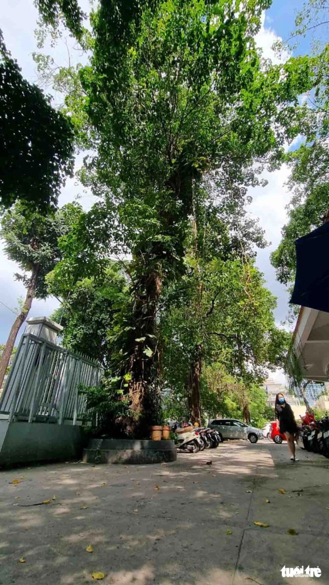 Đó là giây phút "đứng hình" khi nhìn vào giữa sân trụ sở Liên hiệp các hội văn học nghệ thuật TP.HCM với cây "cao su" vô cùng to lớn, mọc vút lên tận tầng 5, tầng 6 của tòa cao ốc. Nhìn kỹ lại thì cổ thụ đường kính gốc hơn 1,5m này hóa ra là cây trôm (lá hao hao cao su) chứ không phải cao su như chúng tôi ao ước tìm gặp. Đang hết sức thất vọng, tôi chợt nhìn qua cổ thụ dây leo quấn quanh ở góc bên, nhìn lên tán, rồi như muốn hét lên: đây rồi, một cổ thụ cao su.