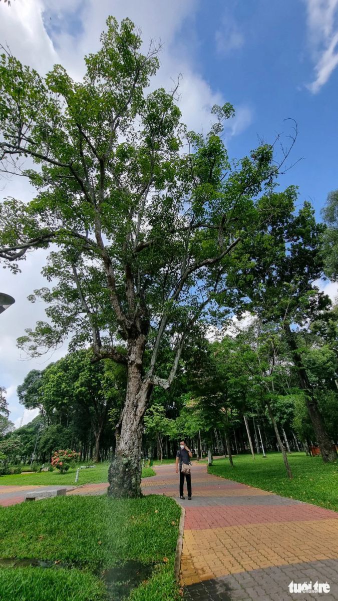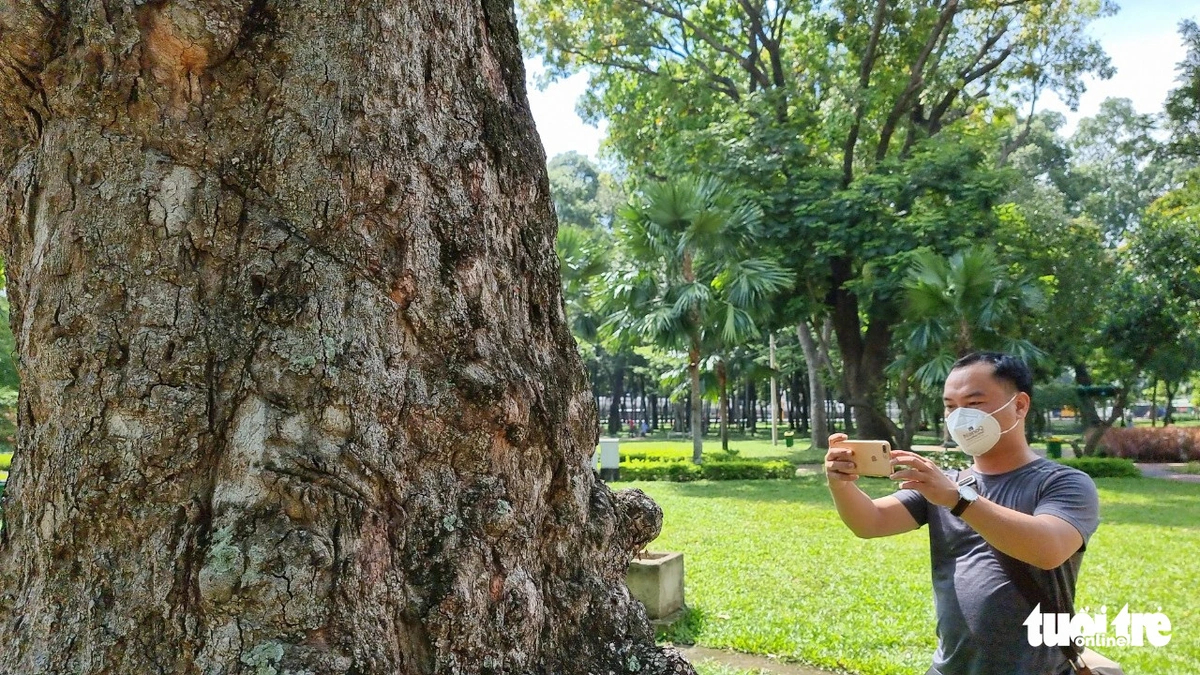 Cây nằm ngay cạnh đường dạo công viên, cách đường Hồng Hà hơn chục bước chân và được đánh số 1099 bằng vôi trắng. Tôi lấy chìa khóa xe chọc thử, mủ trắng từ từ tứa ra, sau đó tuôn trào.